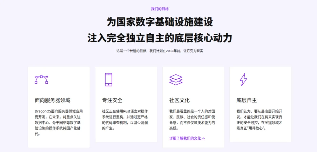 DragonOS是一个面向服务器领域的64位操作系统,它从0开发内核及用户态环境,并提供Linux兼容性。我们使用Rust与C语言进行编写,并正在逐步淘汰原有的C代码,以在将来提供更好的安全性与可靠性。